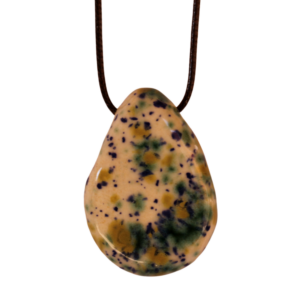 São feitos a mão com cerâmica artesanal, um dos melhores materiais para óleos essenciais, pois é inoxidável e não altera suas características. O cordão é de algodão com comprimento ajustável e acompanha uma bag de retalhos para o armazenamento seguro.